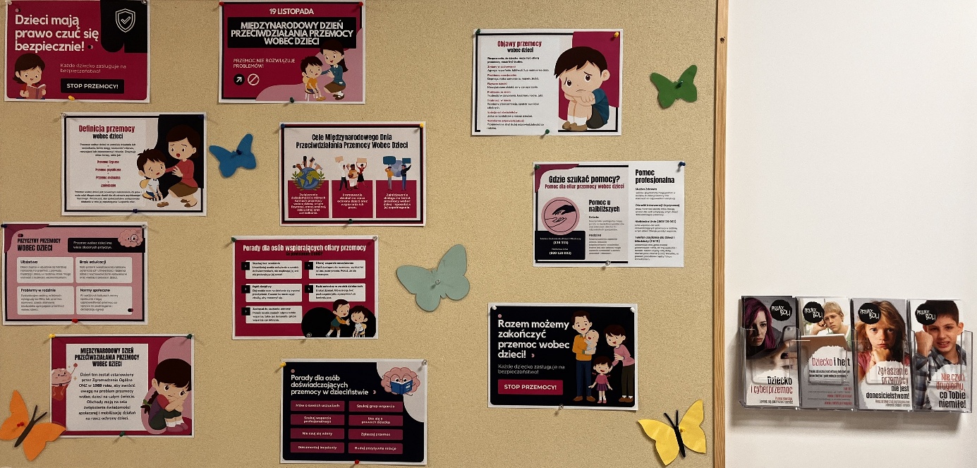 W naszej szkole ten wyjątkowy dzień stał się okazją do refleksji i rozmowy o tym, czym jest dobra relacja, empatia i wzajemne wsparcie. W szkolnych korytarzach można zobaczyć gazetki tematyczne, które zwracają uwagę na problem przemocy i pokazują, jak każdy z nas może reagować i pomagać. Uczniowie mogą również skorzystać z folderów informacyjnych przygotowanych z myślą o ich bezpieczeństwie i prawach.