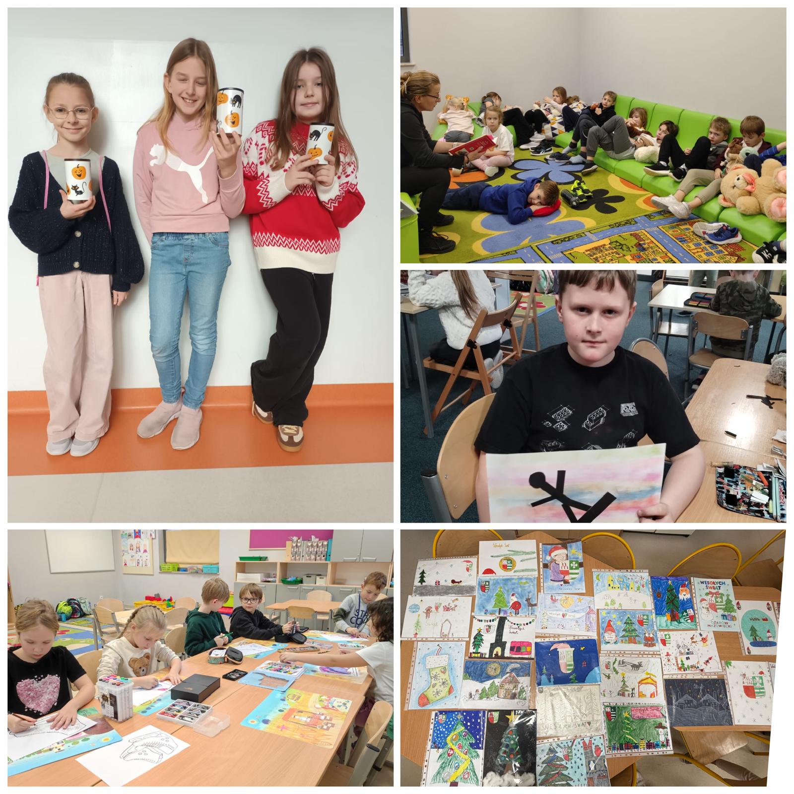 Dodatkowo dzieci podczas zajęć świetlicowych przystąpiły do konkursu: „Mój projekt ożarowskiej kartki świątecznej”, klasa 1d zakończyła dwumiesięczne warsztaty origami, w klasach 3b oraz 3c zostały przeprowadzone warsztaty decupage.