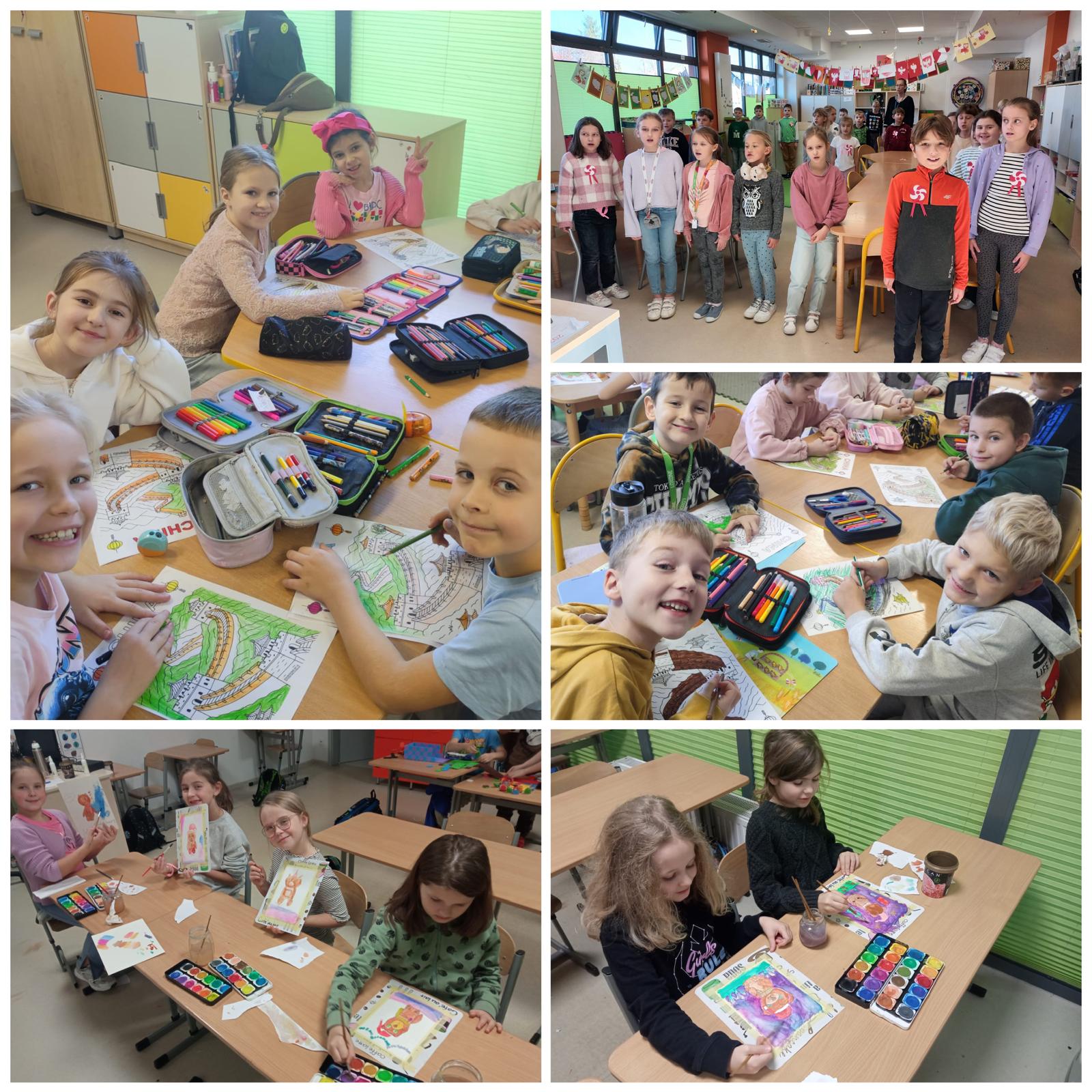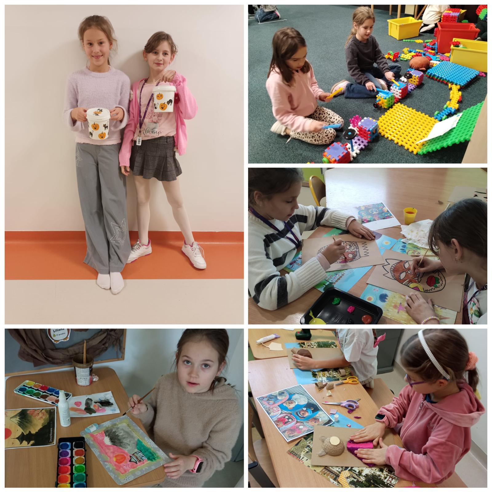 Dodatkowo dzieci podczas zajęć świetlicowych przystąpiły do konkursu: „Mój projekt ożarowskiej kartki świątecznej”, klasa 1d zakończyła dwumiesięczne warsztaty origami, w klasach 3b oraz 3c zostały przeprowadzone warsztaty decupage.