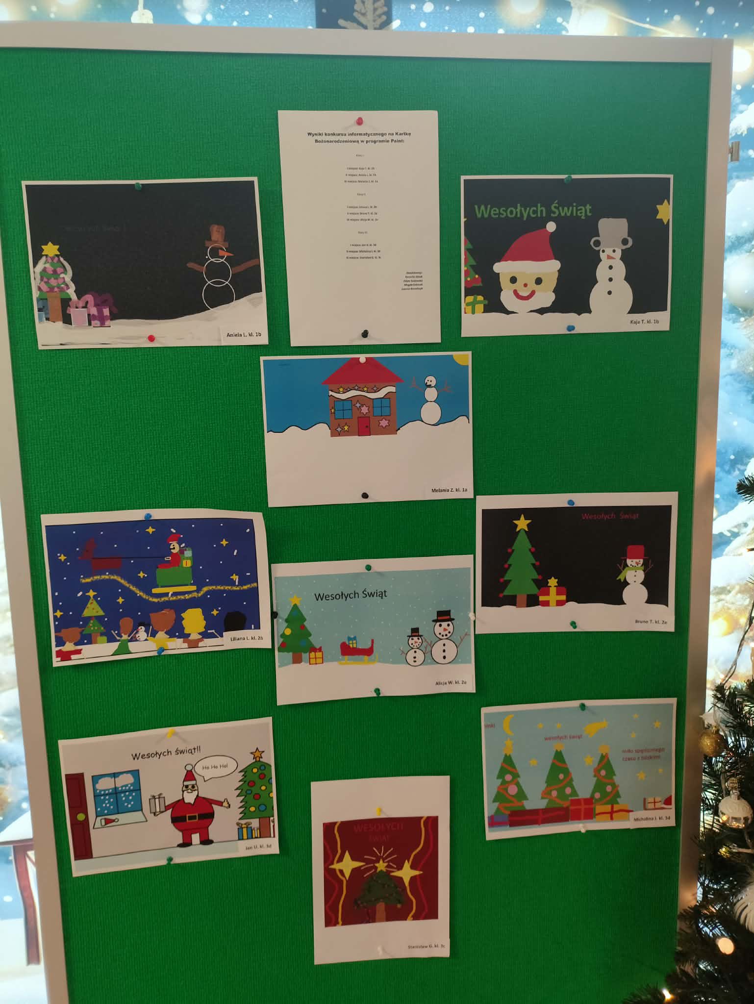 Wyniki konkursu informatycznego na Kartkę Bożonarodzeniową w programie Paint: