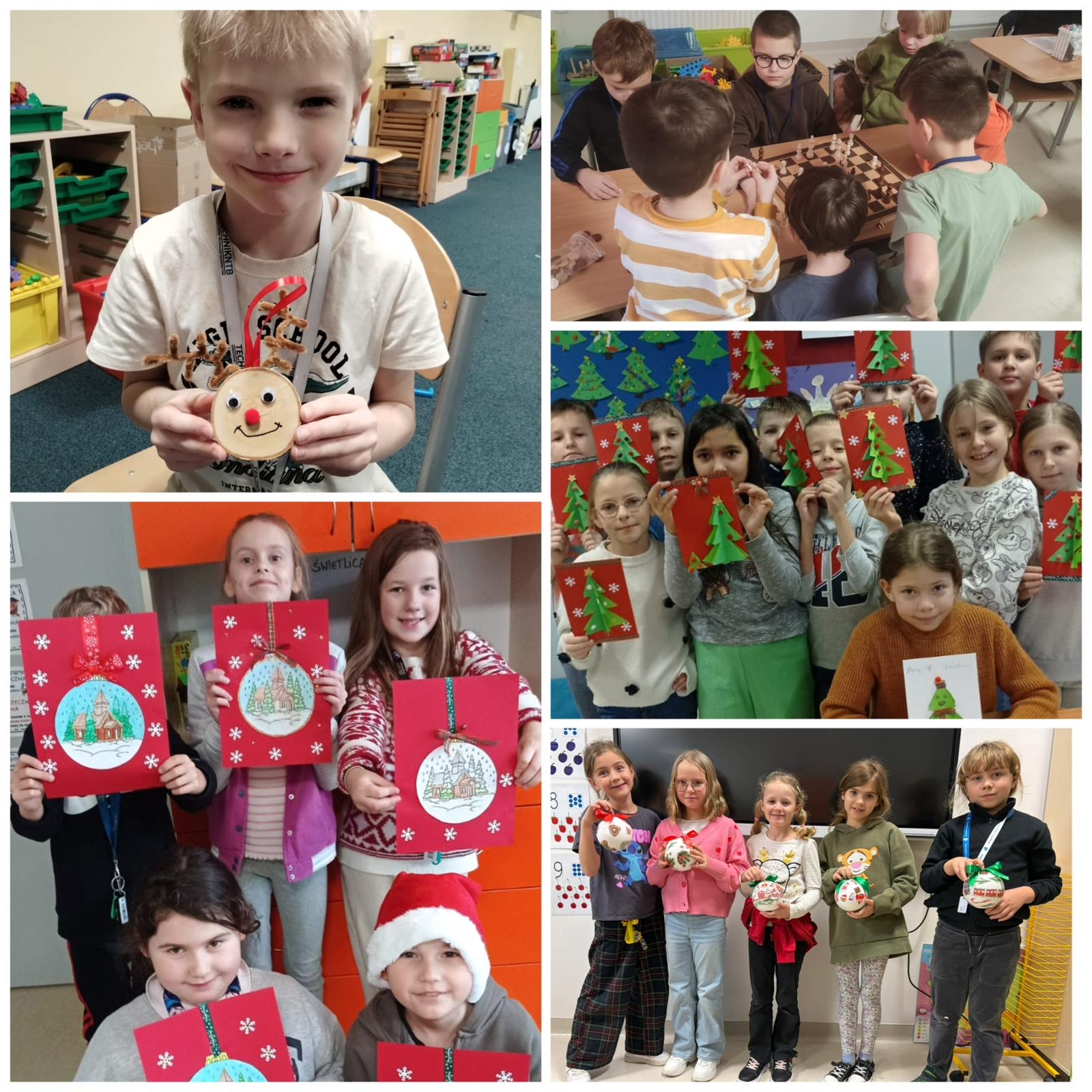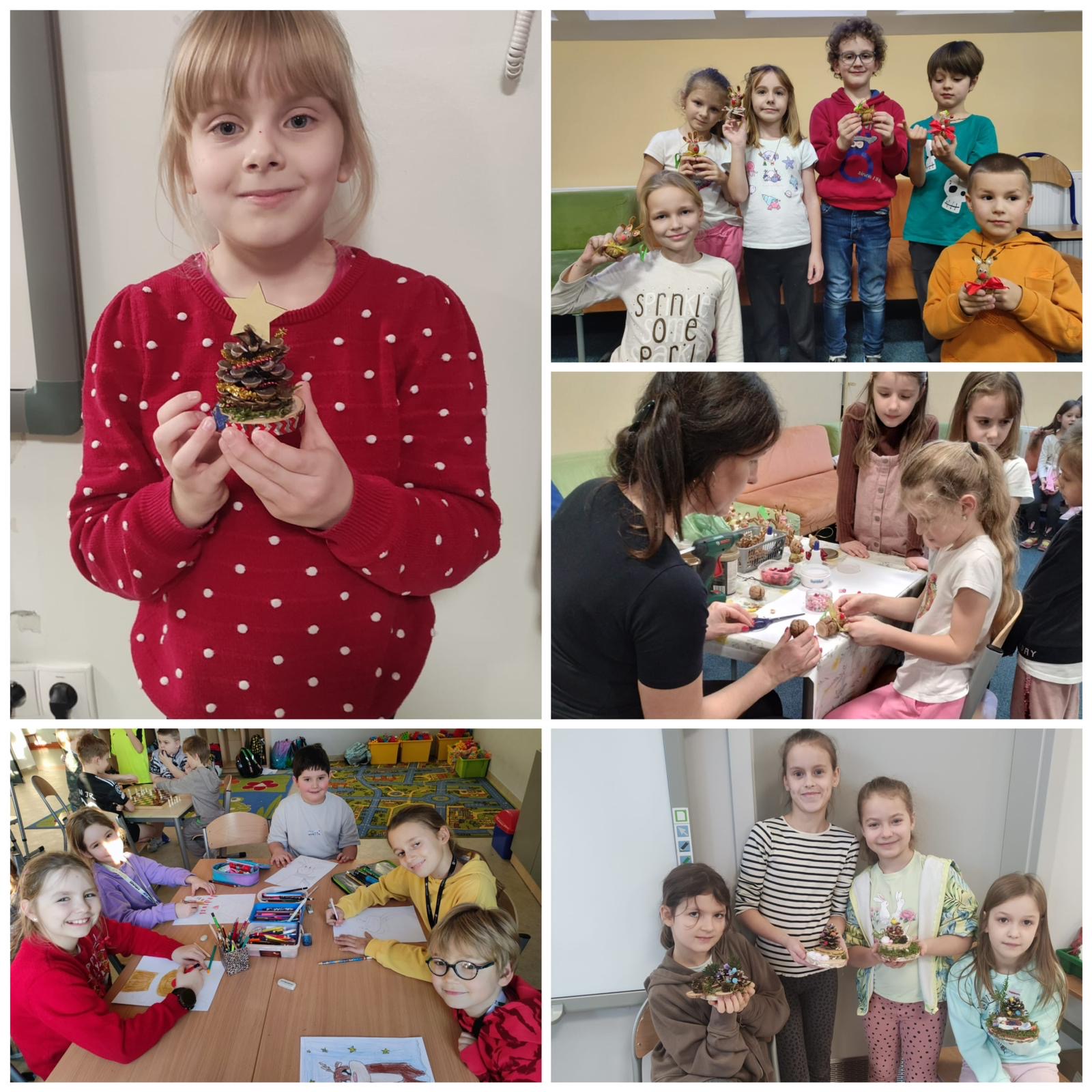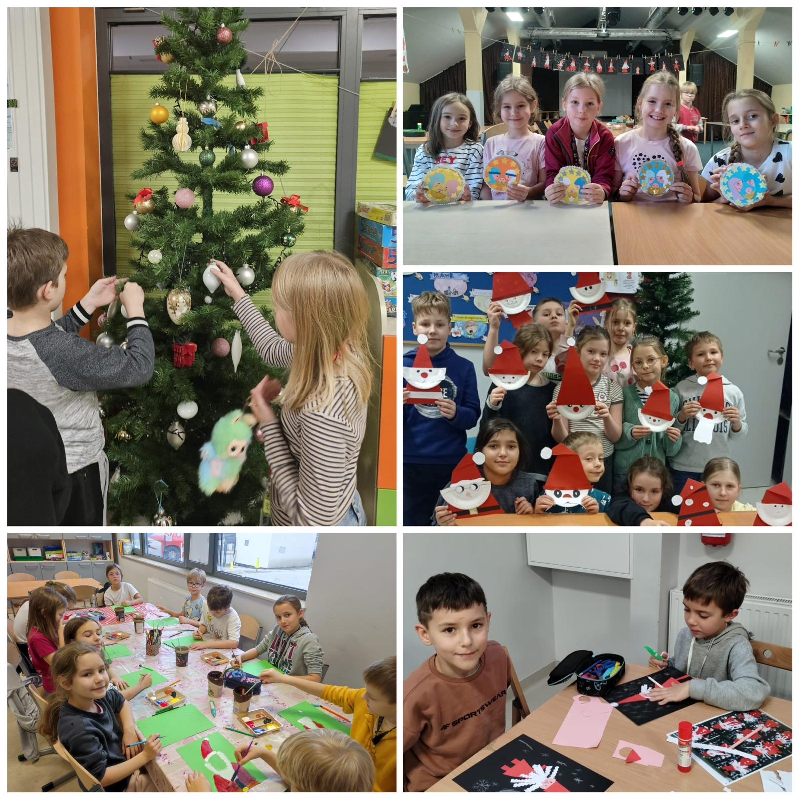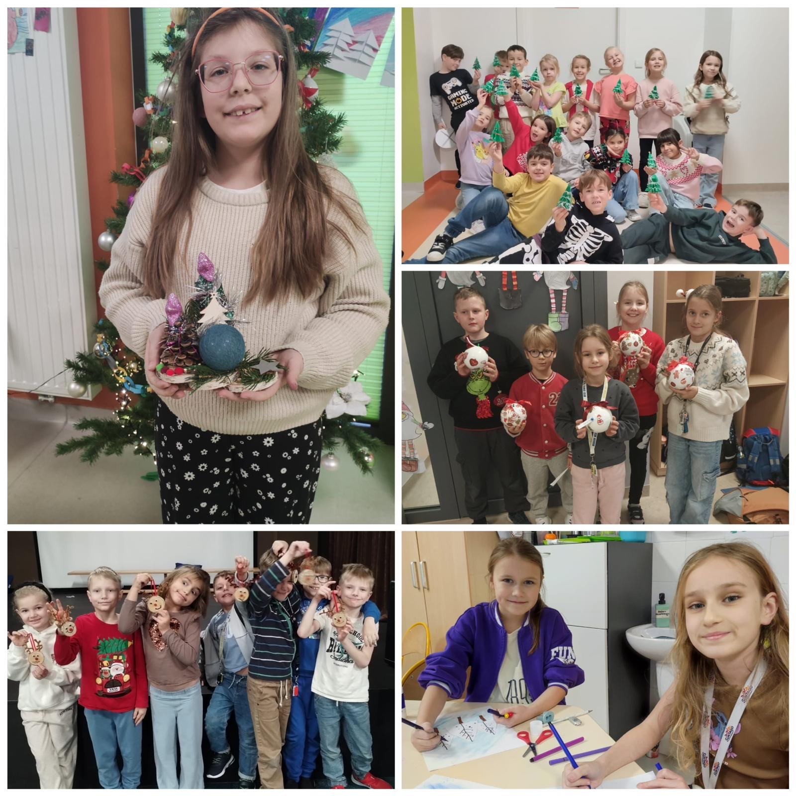 Uczniowie wszystkich klas 1-3 aktywnie uczestniczyli w zajęciach plastyczno-technicznych, podczas których wykonywali różnorodne ozdoby bożonarodzeniowe. Dzieci z dużym zaangażowaniem tworzyły stroiki świąteczne, ozdoby na choinkę, bombki metodą decoupage oraz papierowe choinki wykonane techniką origami. Efekt ich pięknej pracy przedstawiamy w galerii poniżej.