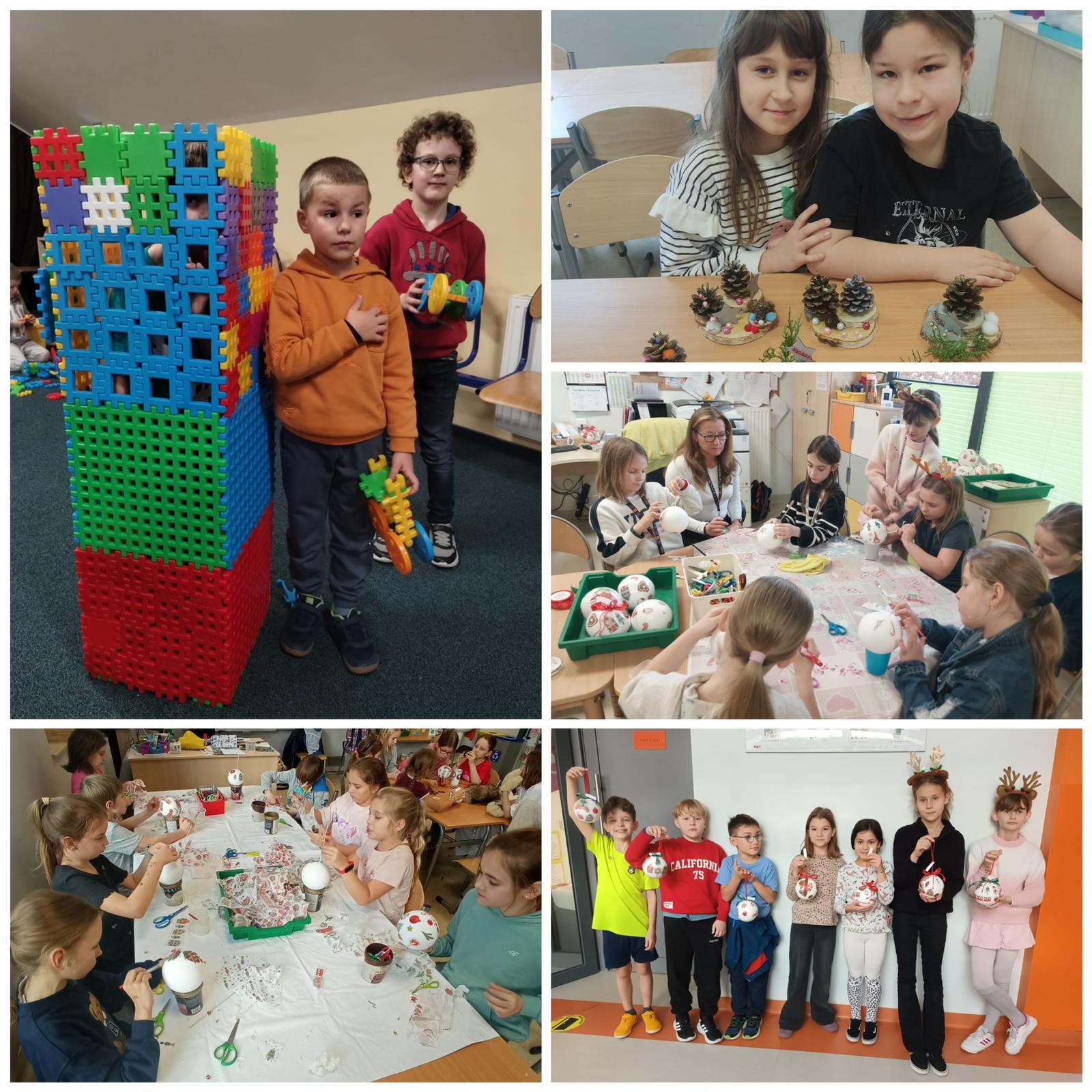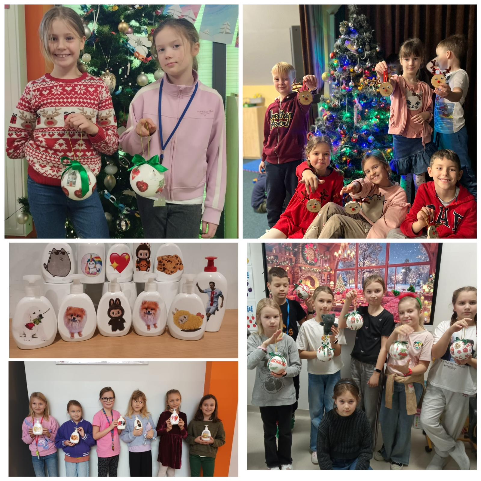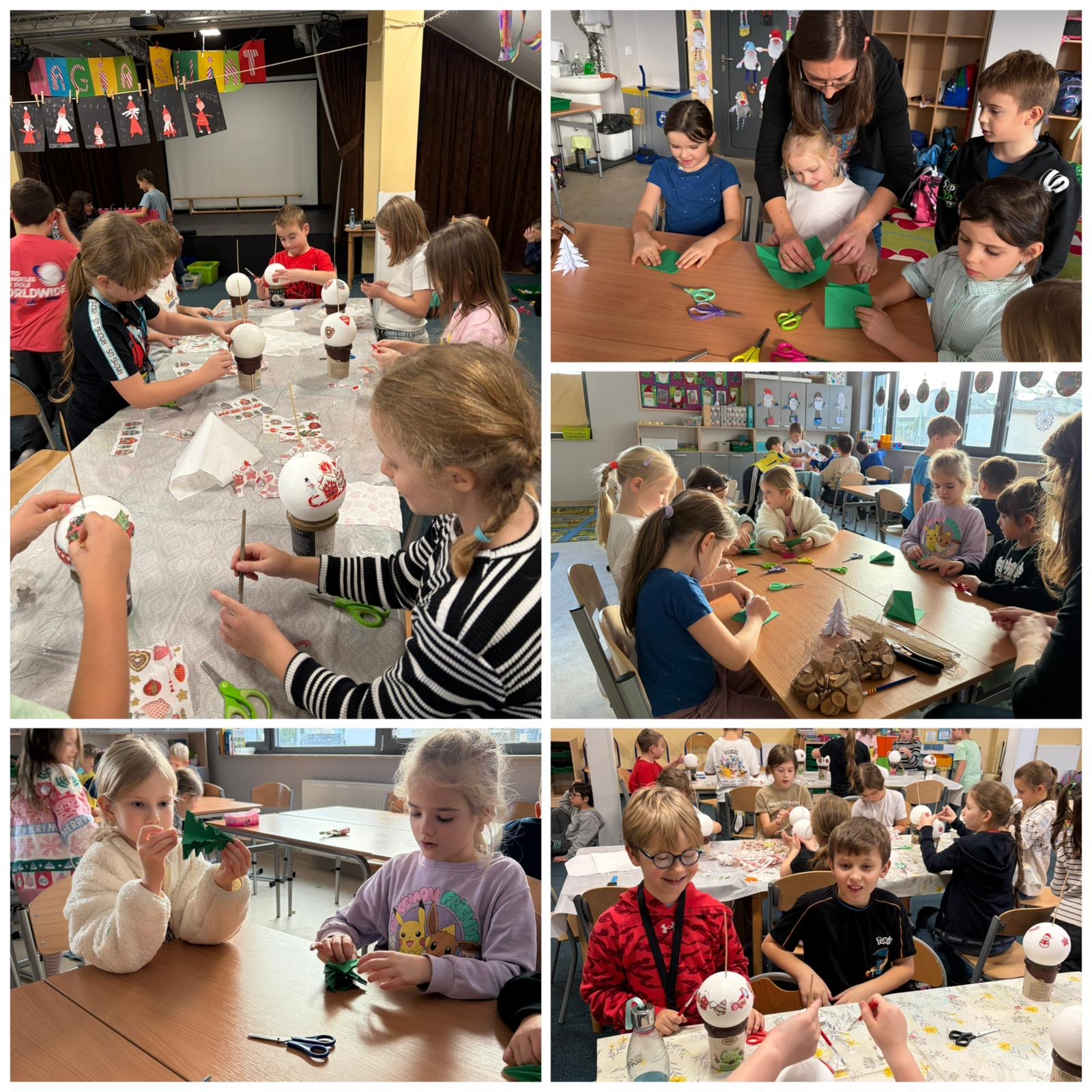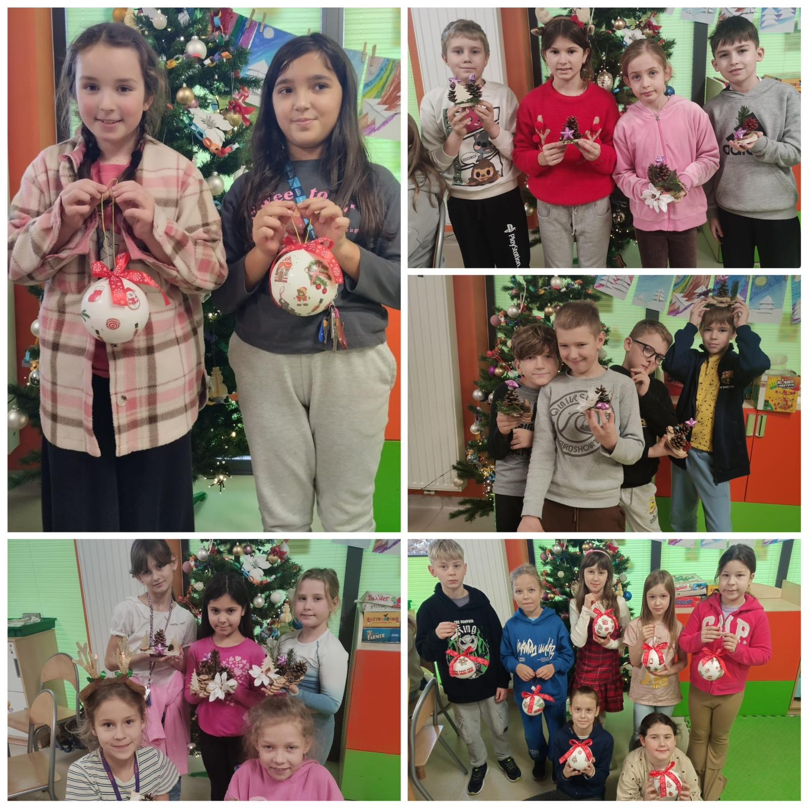 Uczniowie wszystkich klas 1-3 aktywnie uczestniczyli w zajęciach plastyczno-technicznych, podczas których wykonywali różnorodne ozdoby bożonarodzeniowe. Dzieci z dużym zaangażowaniem tworzyły stroiki świąteczne, ozdoby na choinkę, bombki metodą decoupage oraz papierowe choinki wykonane techniką origami. Efekt ich pięknej pracy przedstawiamy w galerii poniżej.