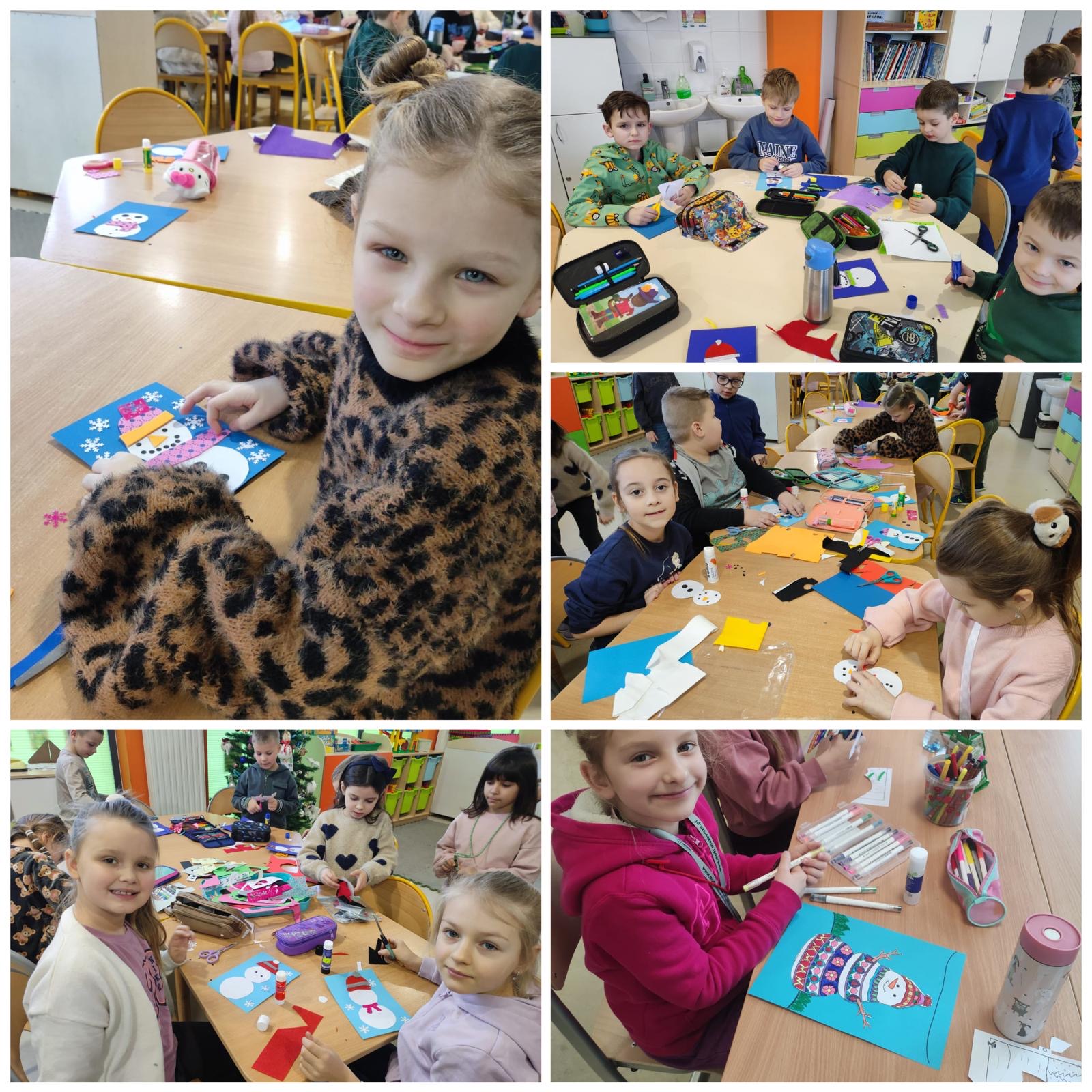 Dzieci brały udział w zajęciach, podczas których wykonywały piękne prace zimowe, między innymi: bałwanki, śnieżynki, zimowe pejzaże oraz prace związane ze sportami zimowymi.