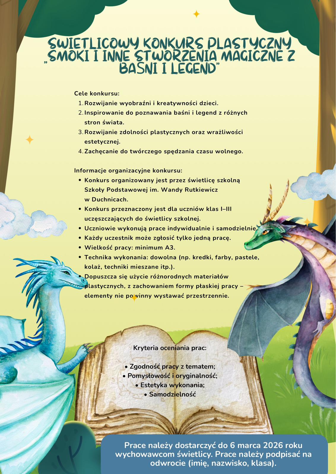 Świetlicowy konkurs plastyczny “Smoki i inne stworzenia magiczne z baśni i legend” 18 lutego 2026 Udostępnij Wyślij za pomocą e-mail