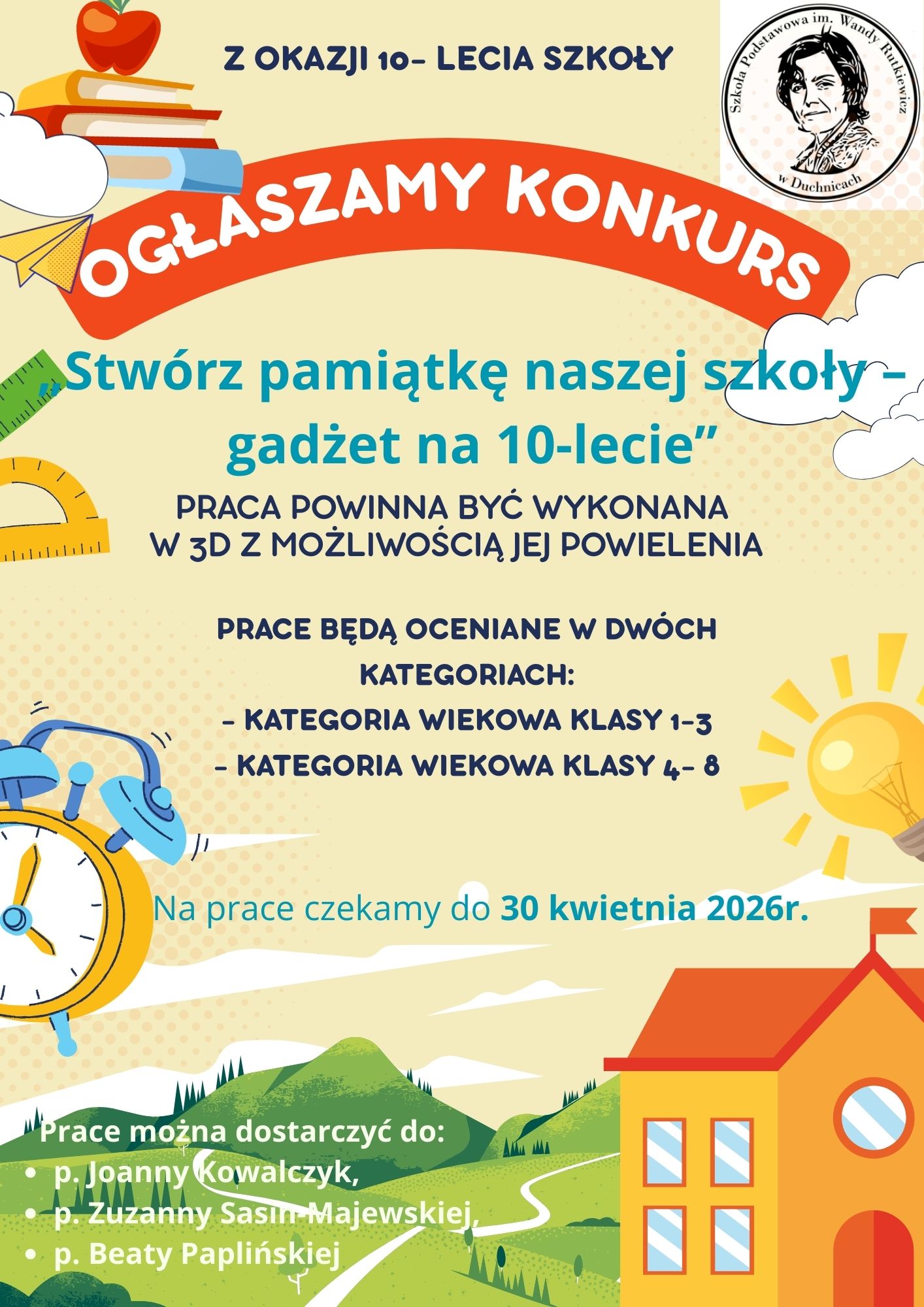 Szkolny konkurs “Stwórz pamiątkę naszej szkoły – gadżet na 10-lecie” 19 marca 2026 Udostępnij Wyślij za pomocą e-mail REGULAMIN GADŻET Załączniki REGULAMIN GADŻET (553 kB)