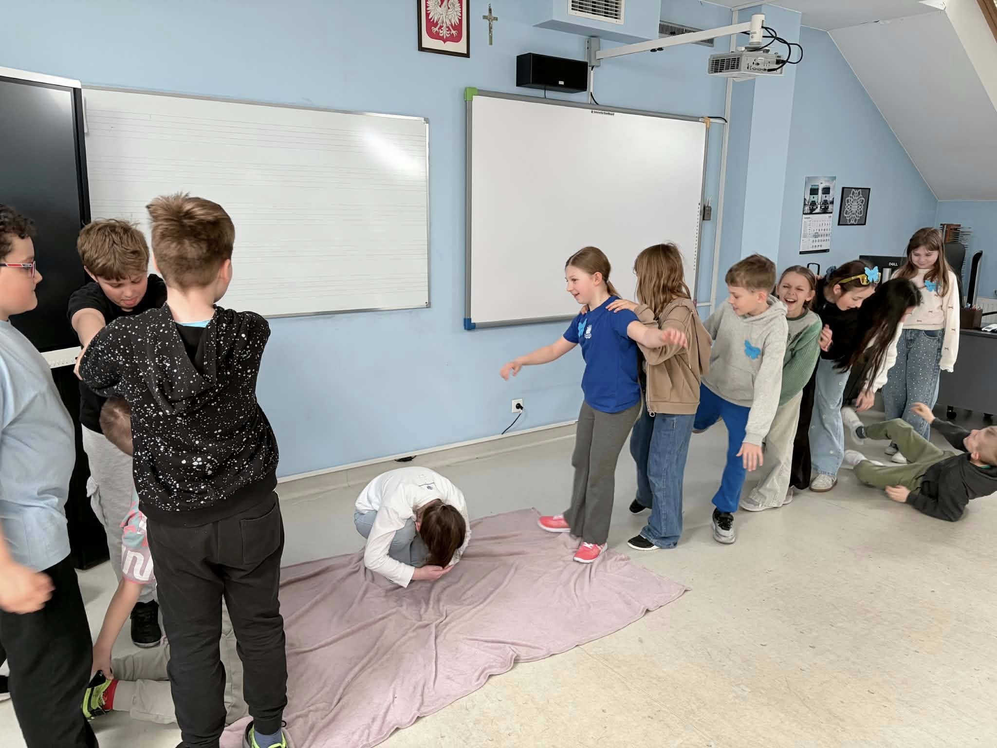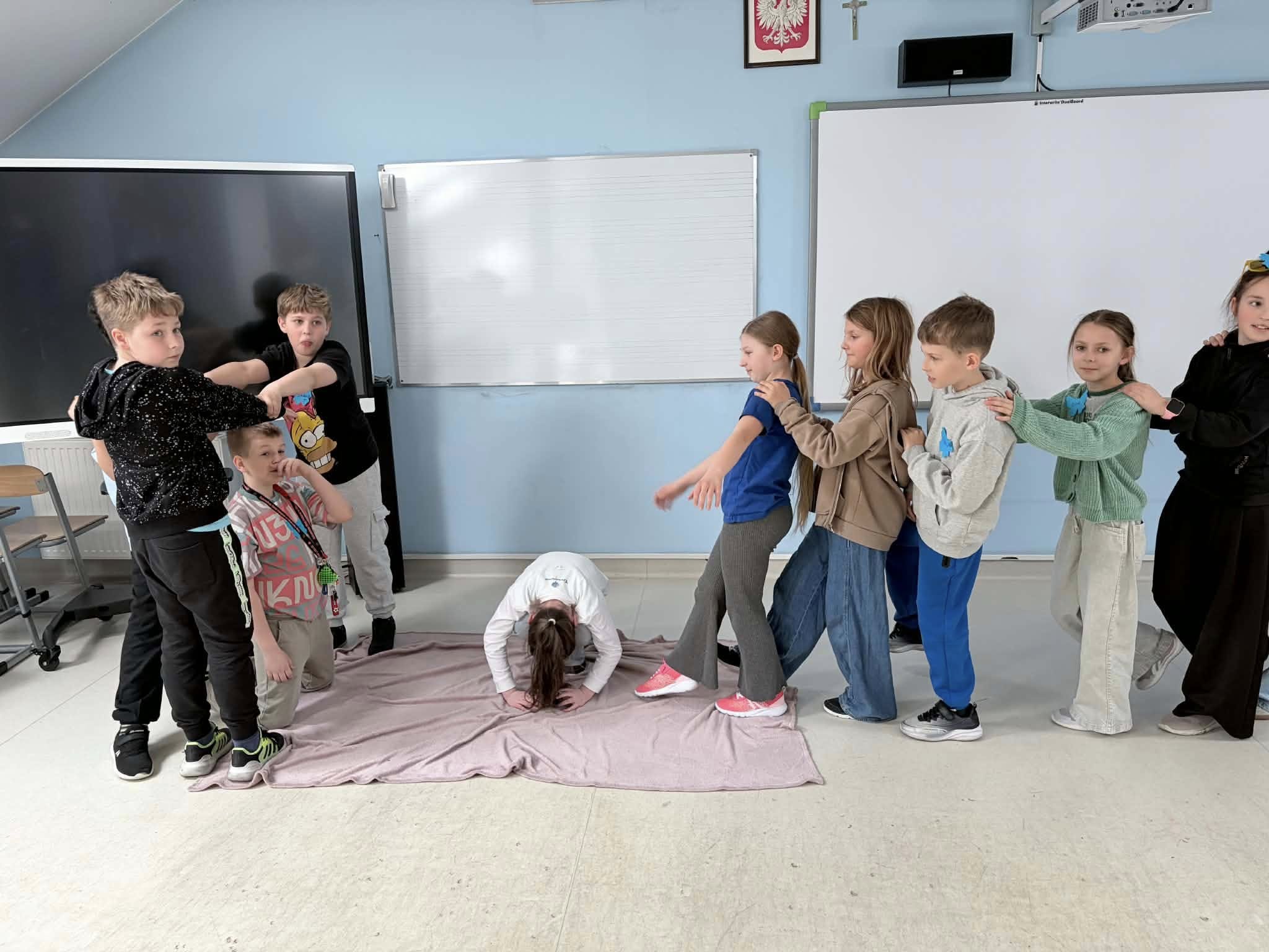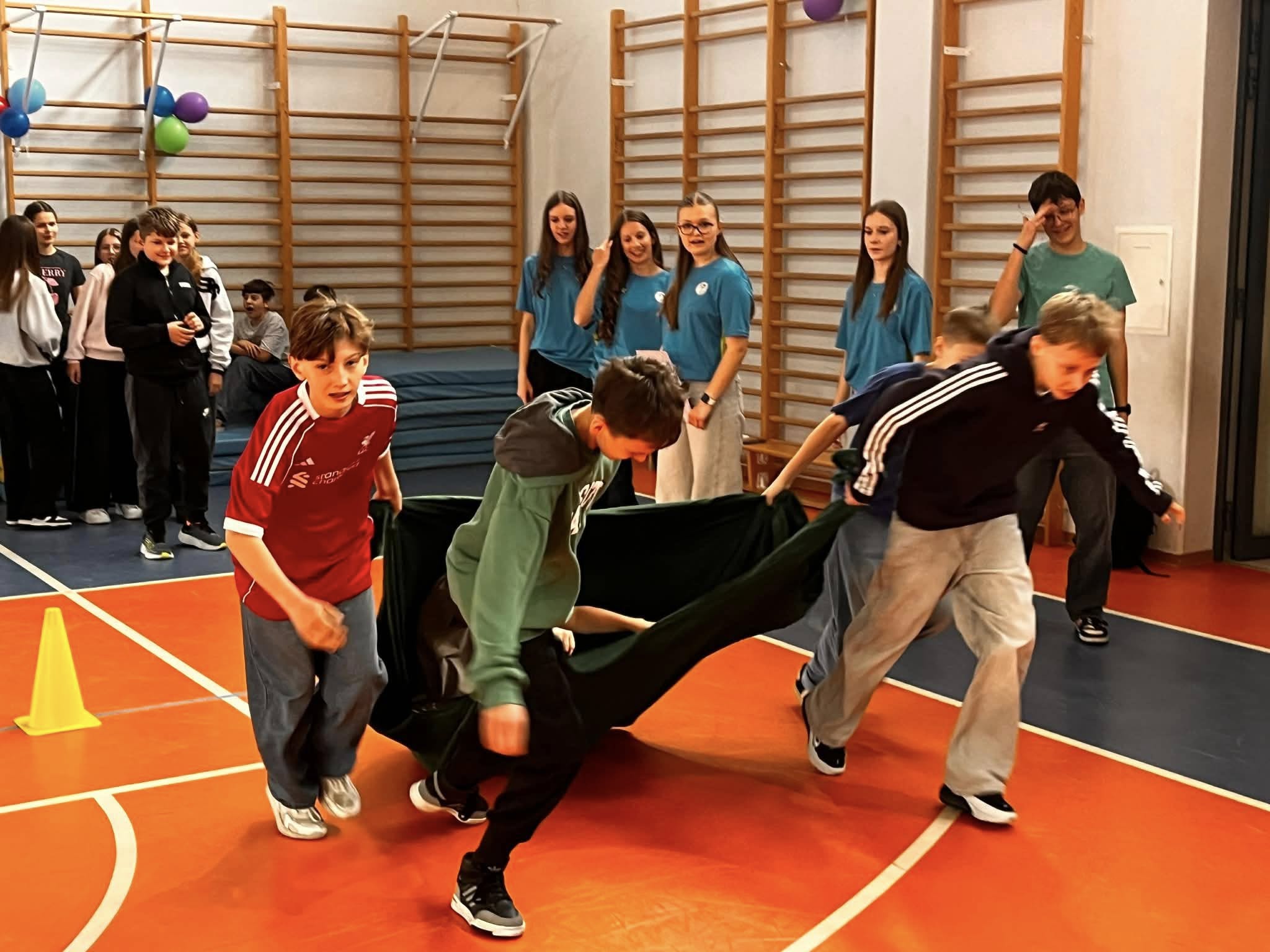 Klasy 4-6 uczestniczyły w rozgrywkach sportowych przygotowanych przez nauczyciela współorganizującego Monikę Jagiełło oraz pedagoga specjalnego Agnieszkę Opiatowską. Było głośno, ciekawie i wesoło